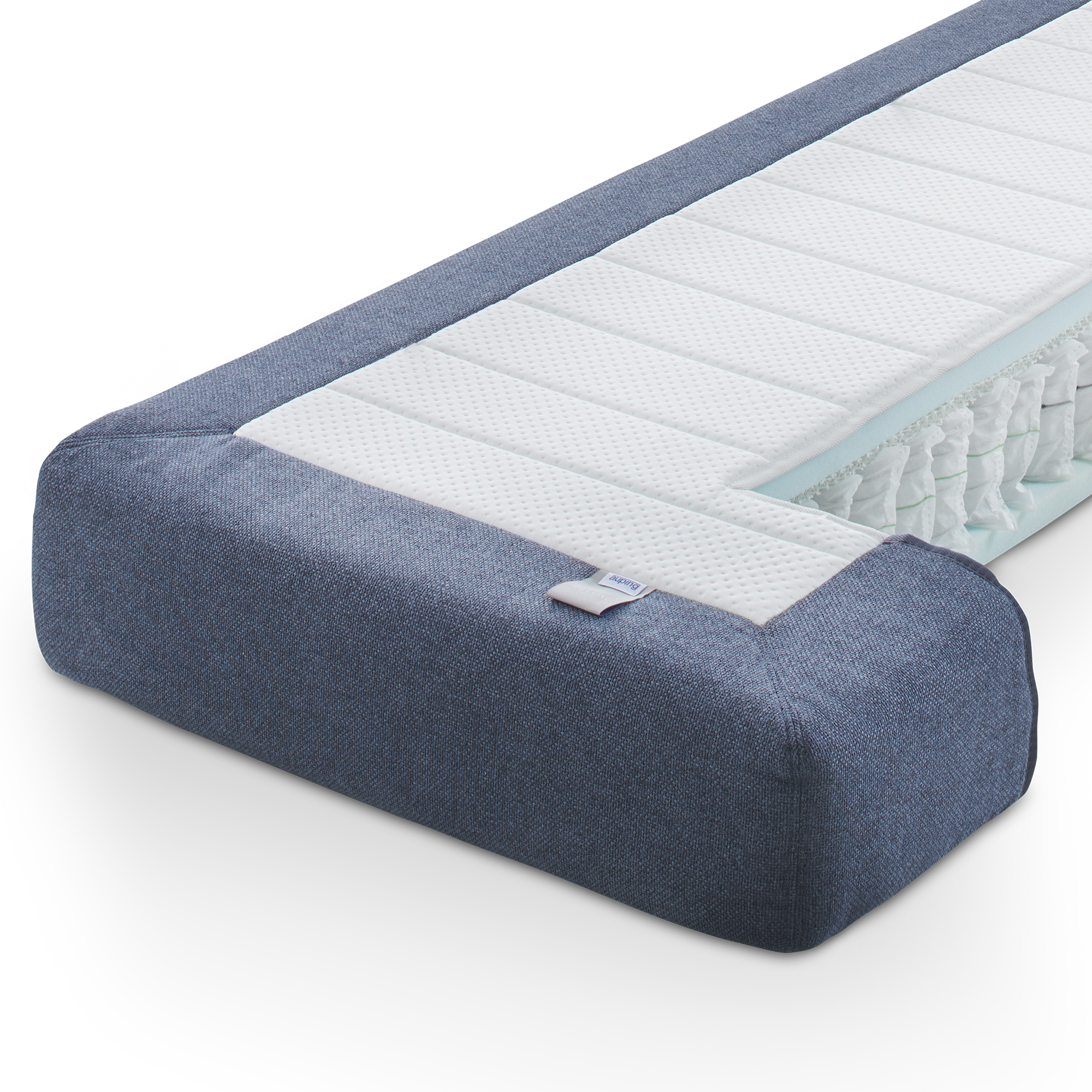 In het geval van een boxspring matras is de matras gestoffeerd in een meubelstof. De meubelstof kies je zelf. Het bovenblad wordt ook wel de spiegel genoemd. De spiegel wordt gemaakt van een breisel met Tencel en Polyester.