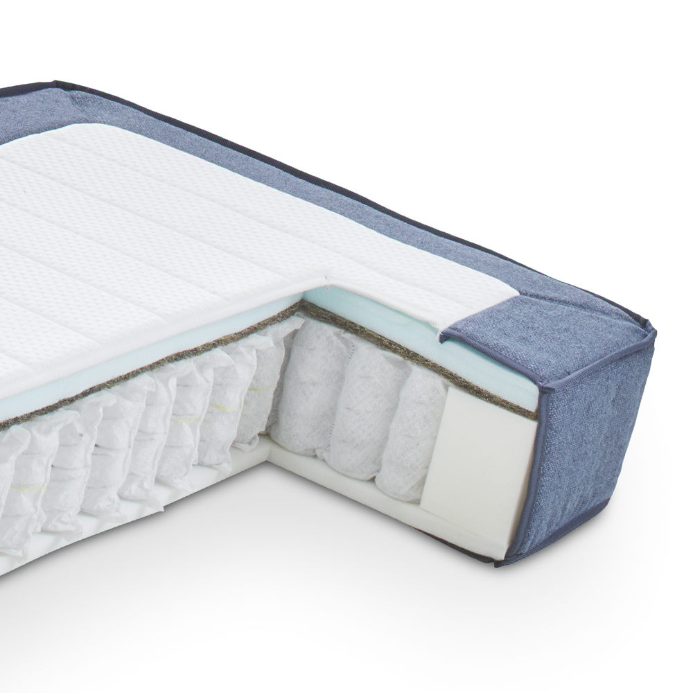 Deze 1 centimeter hoge, zachte laag ligt bovenop de pocketveren. Het zorgt voor een gelijkmatige verdeling van jouw lichaam op het matras en een zachte overgang tussen de matraszones.
