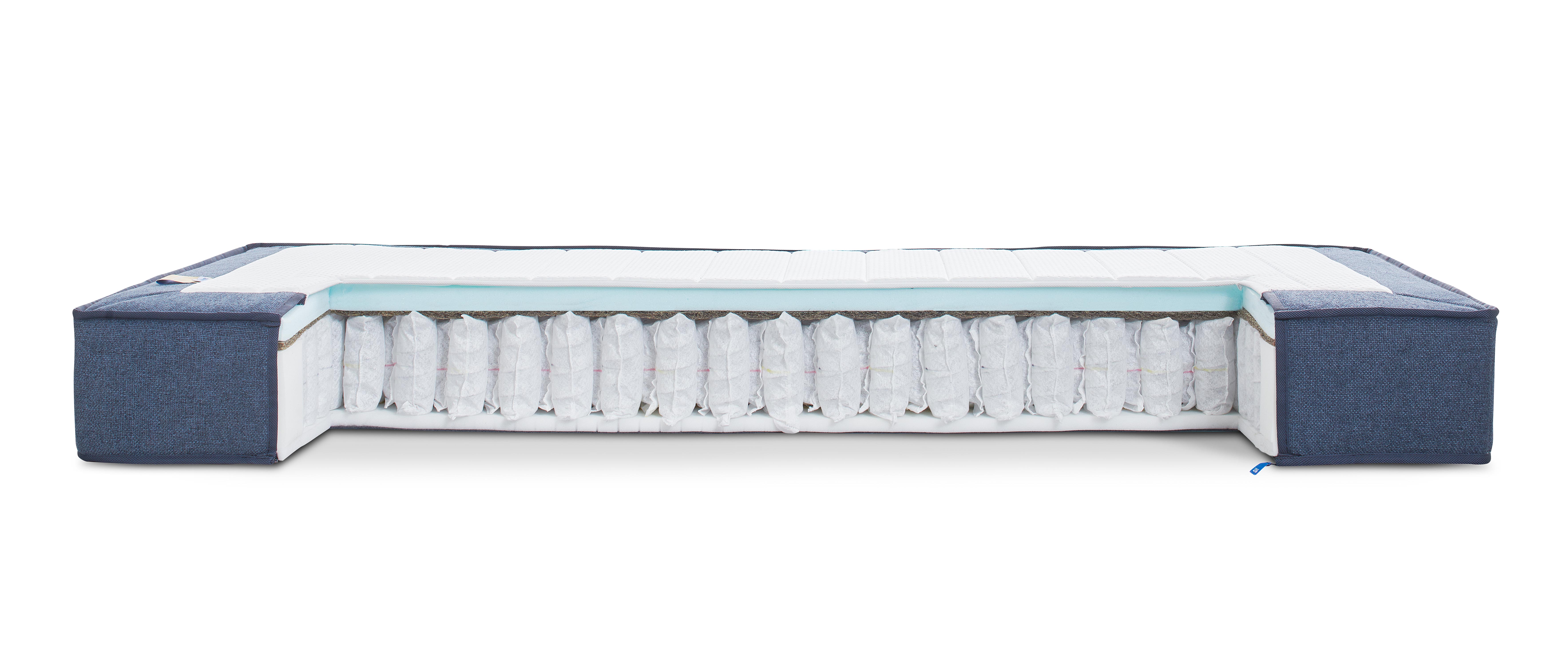 De cilindervormige pocketveren zijn geplaatst in de zones waar je lichaam meer stabiliteit nodig heeft, zoals de heupzone.